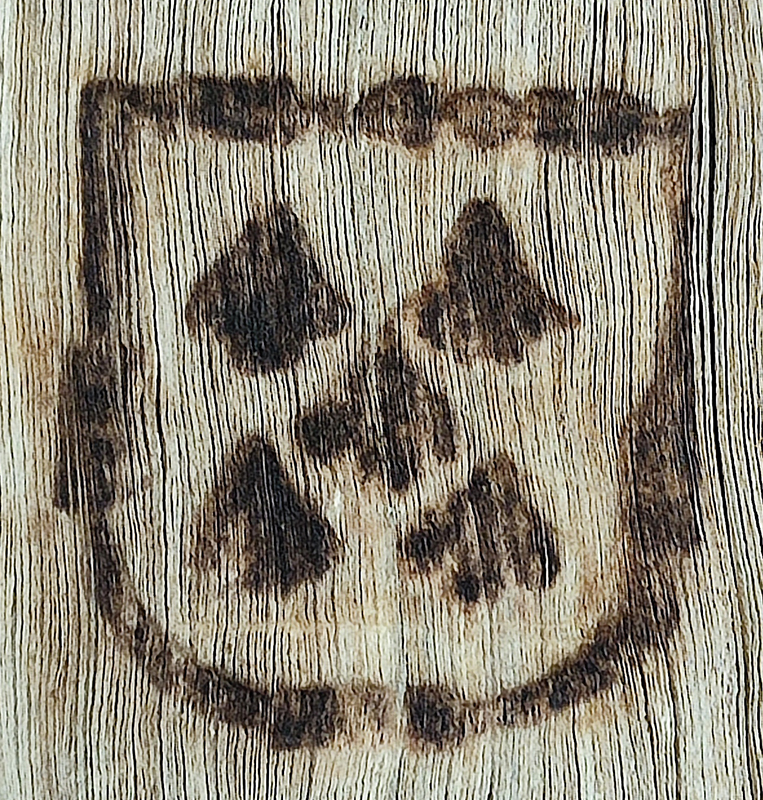 Cordón franciscano en forma de escudo en cuyo interior representación del emblema franciscano de las cinco llagas(2).