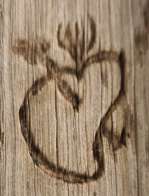 Rafael Sala la incluye dentro de las marcas agustinas como no identificada. En 2016 se catalogó como tal, pero gracias al ejemplar de la John Carter Brown Library y al apoyo de la Biblioteca Pública de San Nicolás de Hidalgo, por medio de la Lic. Ivette Arreola se pudo afinar la procedencia de esta impronta.