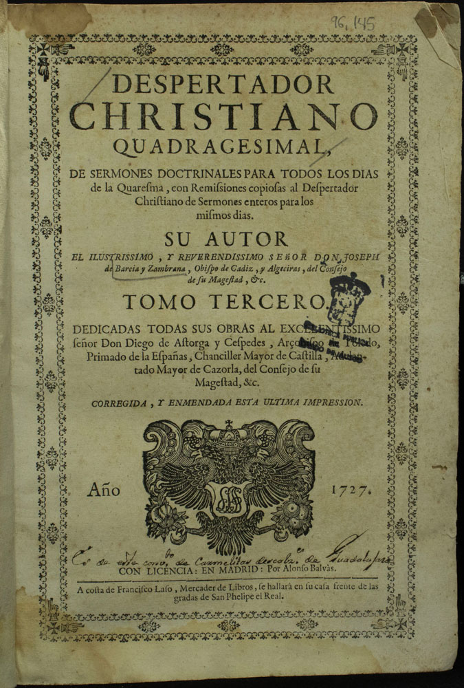 Madrid : por Alonso Balvás : a costa de Francisco Laso, mercader de libros ..., 1727