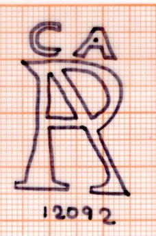 Monograma con las letras entrelazadas C, A, P y A que puede interpretarse como C[olegio] A[postólico] [de[ P[achuca].