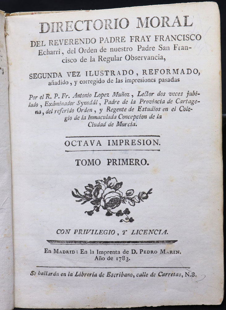 Directorio moral / del Reverendo Padre Fray Francisco Echarri, del Orden de nuestro Padre San Francisco de la Regular Observancia ...
