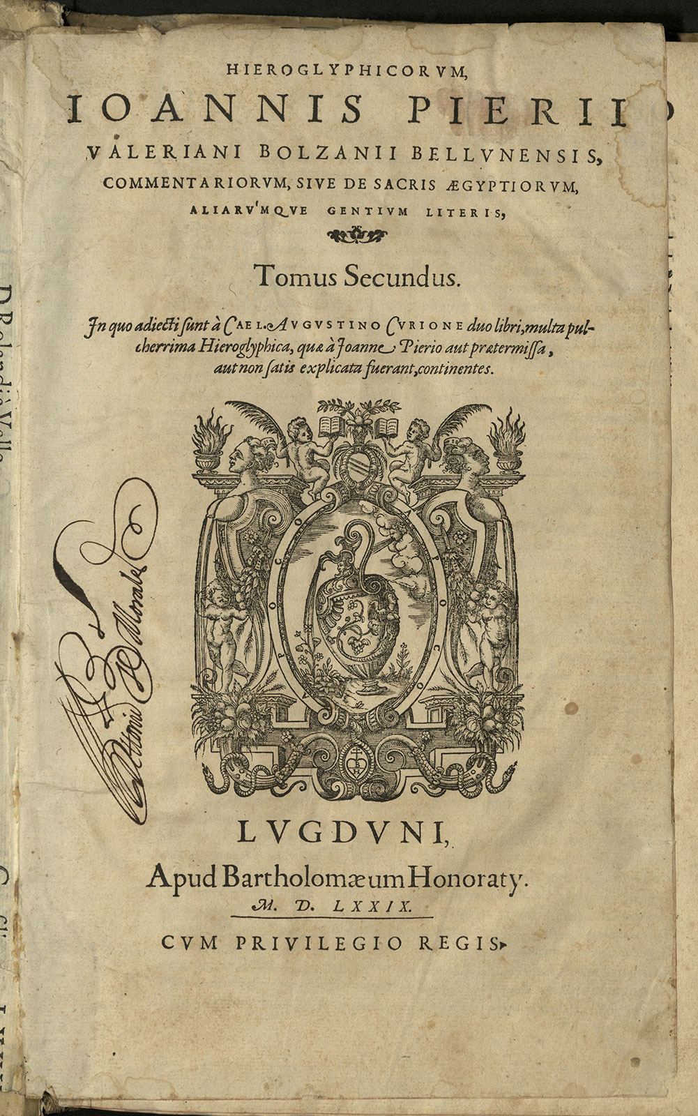 Hieroglyphica sive de sacris AEgyptiorum, aliarumque gentium literis commentarii Ioannis Pierii Valeriani Bolzanii Bellunensis ; A Caelio Augustino Curione doubus libris aucti, & multis imaginibus illustrati ...