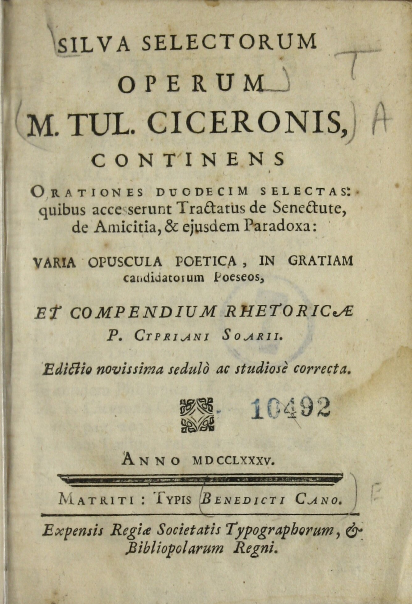 Matriti : TypisBenedicti Cano : Expensis Regiae Societatis Typographorum ...,1785