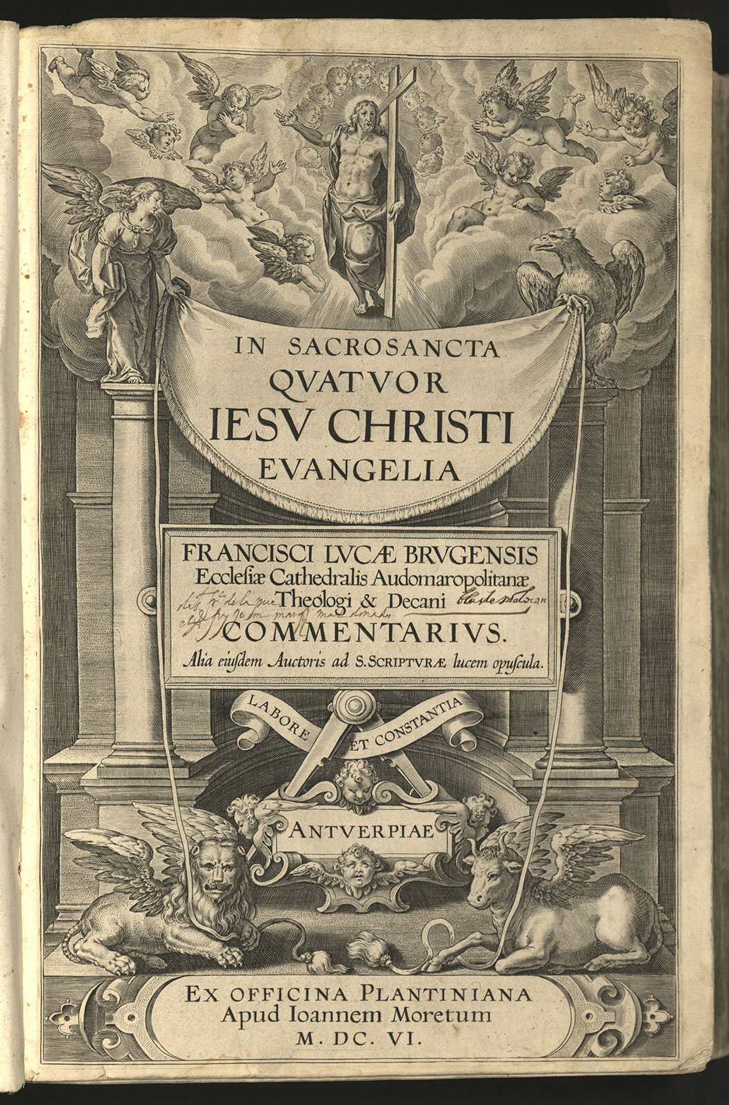 In sacrosancta quatuor Iesu Christi evangelia / Francisci Lucae Brugensis Ecclesiae Cathedralis Audomaropolitanae Theologi & Decani commentarius Alia eiusdem Auctoris ad S. Scripturae lucem opuscula.