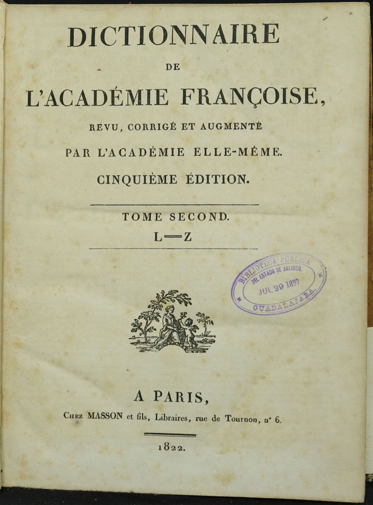 A Paris: Chez Masson et fils, Libraires, rue de Tournon, n°.6, 1822.